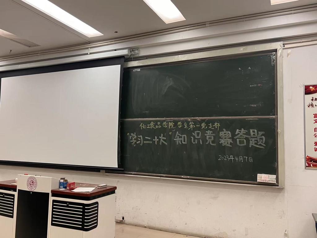 为深入学习贯彻党的二十大精神,督促支部成员自主学习党的相关章程,切实提升自身的思想政治觉悟和党性修养,推动党的二十大精神传播。我院学生第一党支部于2023年4月7日晚六点半在英才校区一阶四教室,组织举办了“学习党的二十大精神”主题知识竞赛活动,由支部书记张煜佳主持,学生第一党支部全体成员参与活动。